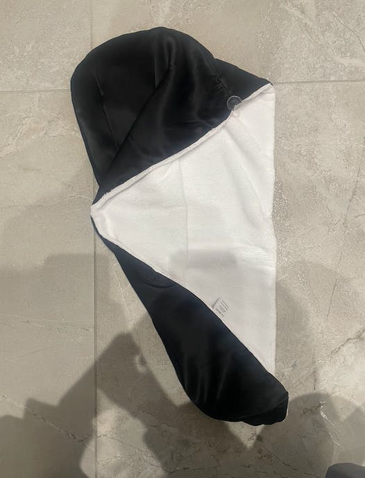 La serviette pour cheveux Virginie incarne l’élégance classique. Sa soie noire s’adapte à tous les styles et révèle une allure chic et discrète. Associée au blanc polaire, elle offre un contraste sobre et raffiné. Bimatière et pensée pour le soin des cheveux, elle limite les frisottis, préserve la fibre capillaire et sublime chaque routine beauté.